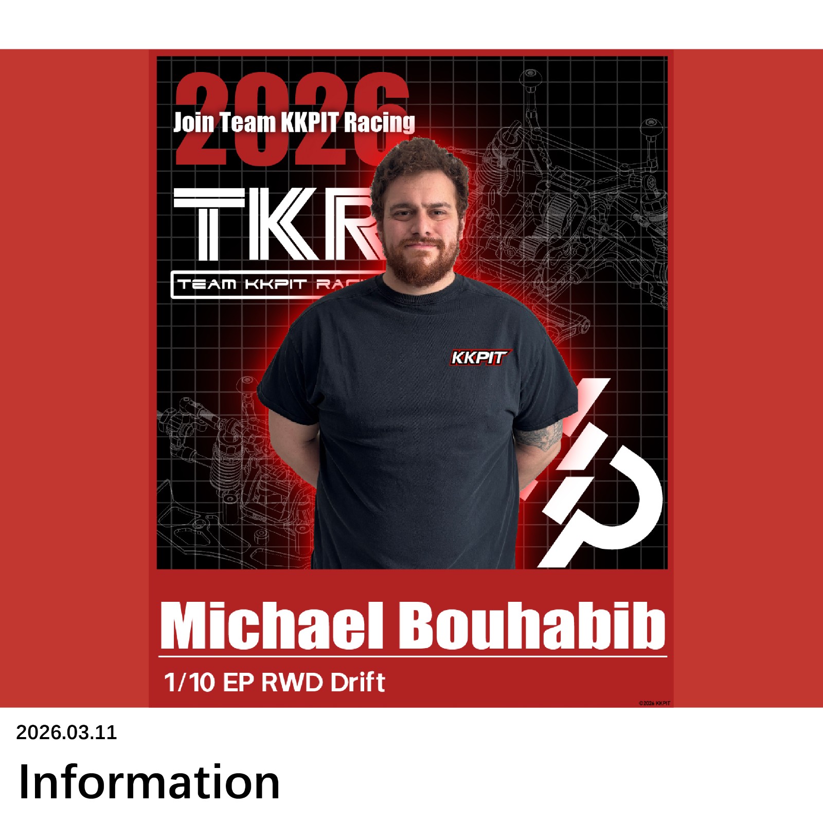 Welcome Malaysian drifting driver Michael Bouhabib to join TEAM KKPIT RACING